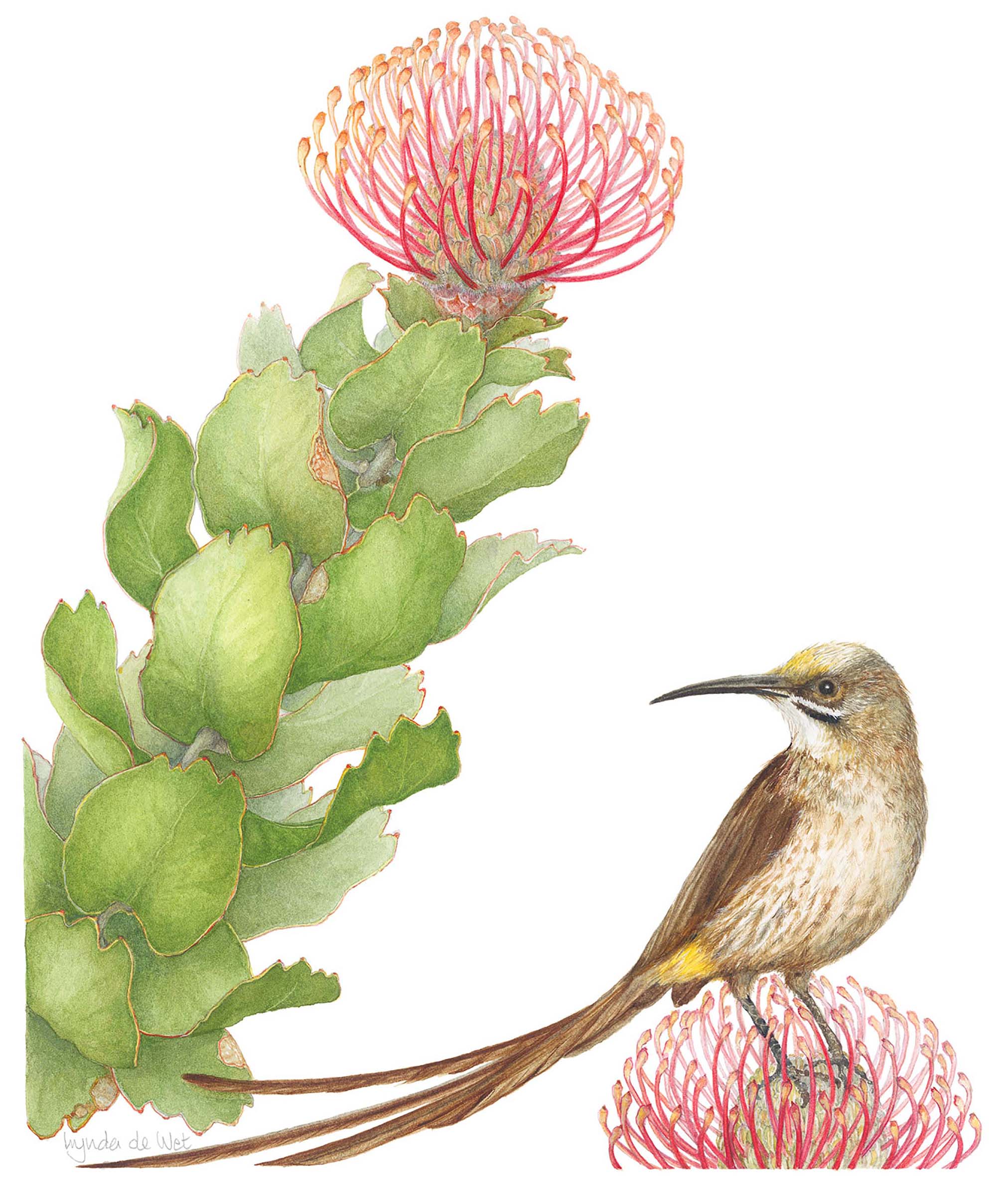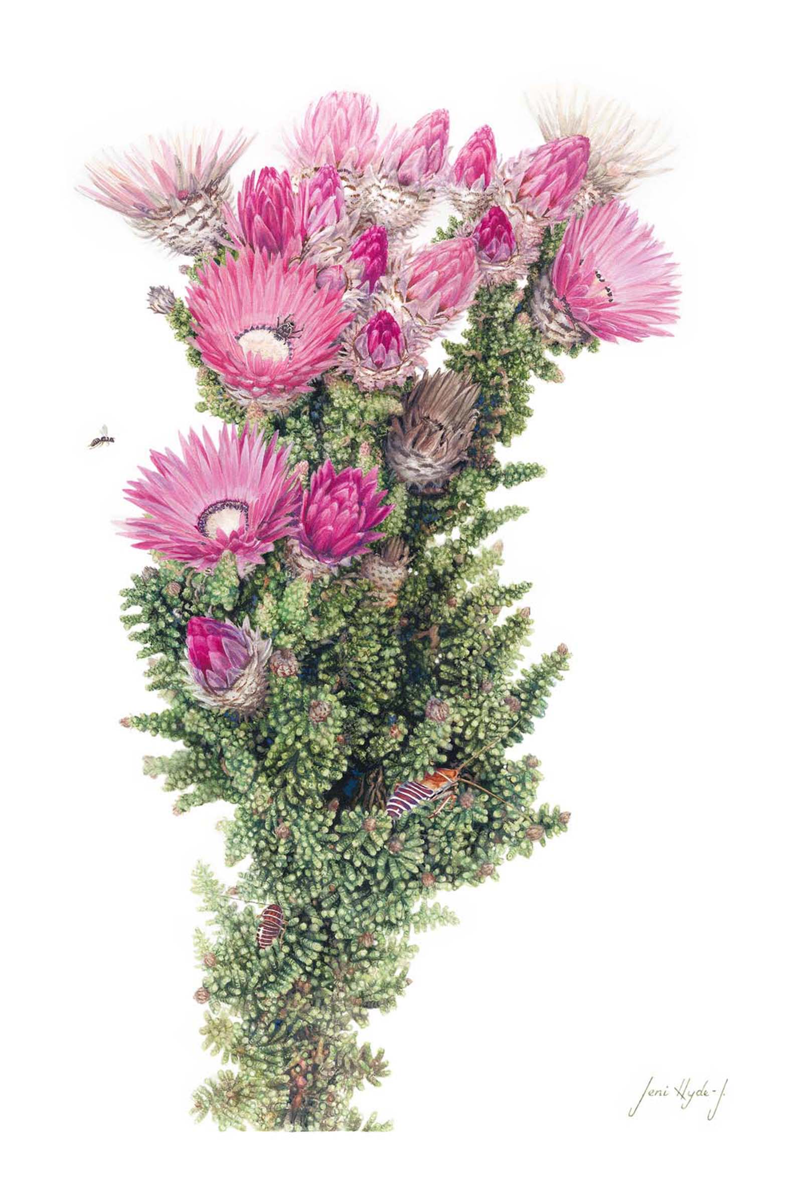 This collection of beautiful, distinctive botanical art pieces is intended to reach a broader audience by engaging people on an emotional level, and inspiring them to become ambassadors for conserving and promoting the Cape Floral Kingdom and the majesty of the Cape fynbos.