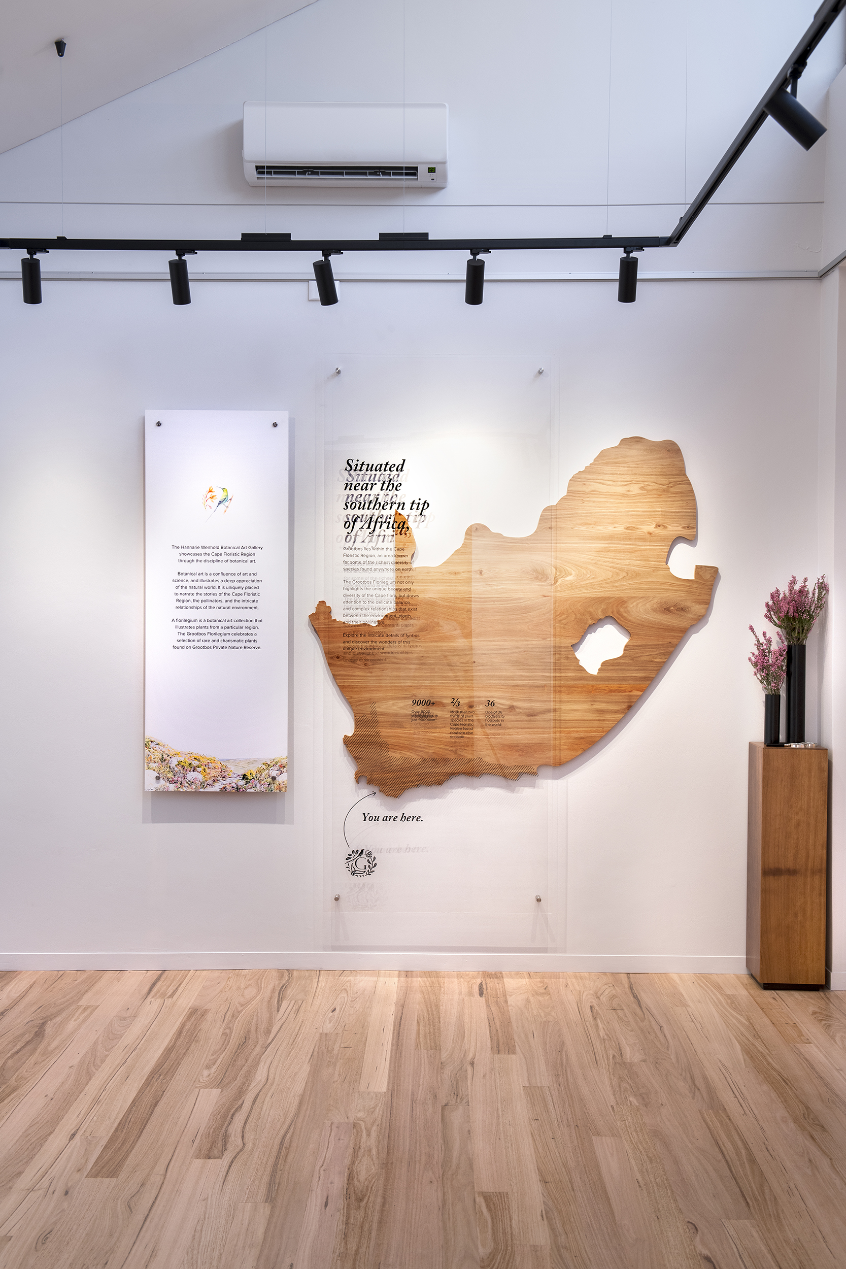 Each exhibition room has been mindfully curated to highlight the unique narratives of the Cape Floral Kingdom. The key themes of Diversity, Ecology, Pollination, Fire, Forests, Heritage and Threatened Species are expressed through the artwork displayed in each room.